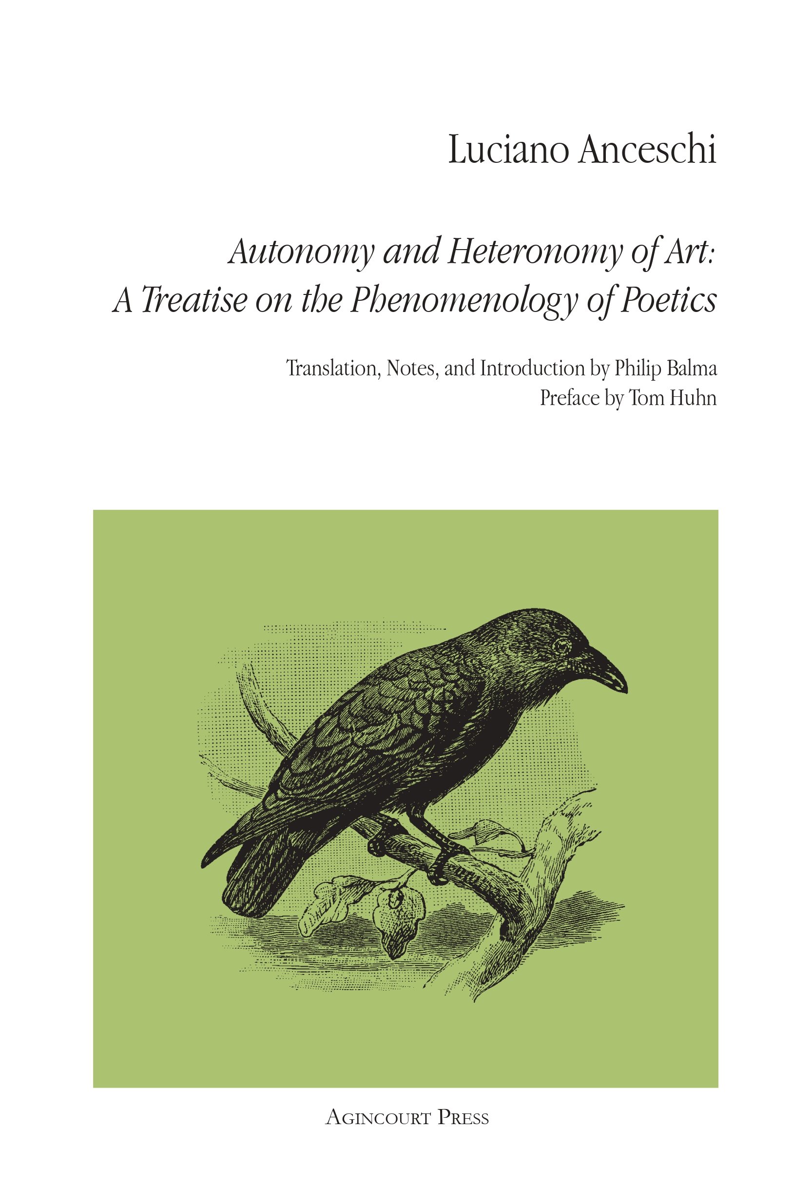 “The impact and influence of Luciano Anceschi’s Autonomy and Heteronomy of Art: A Treatise on the Phenomenology of Poetics persists due to its rich and provocative ranging over a diversity of fields. The text formulates intriguing combinations of interpretation and insight that contribute to the disciplines of aesthetic theory, empiricism, phenomenology, literary theory, and poetics. Perhaps the book’s most enduring achievement lies in its demonstration that these fields overlap and interpenetrate one another.” — Tom Huhn, from the Preface